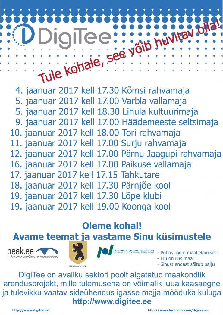 Jaanuaris toimuvad Pärnumaal ning Hanila ja Lihula vallas DigiTee olemust ja vajalikkust tutvustavad kohtumised elanikega.