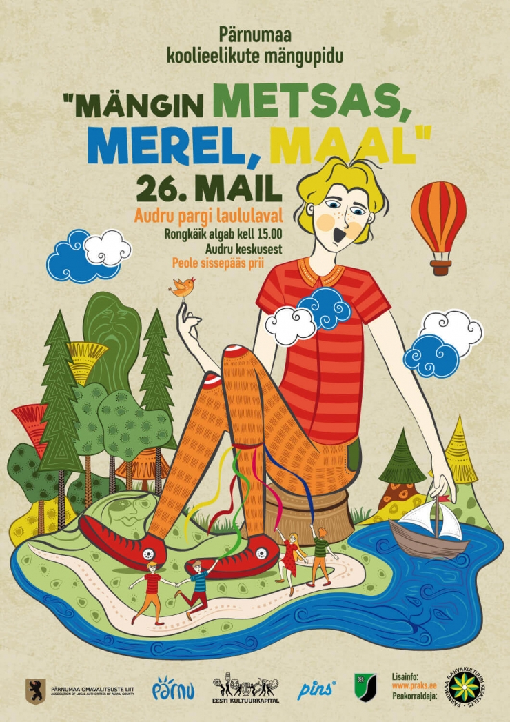 Pärnumaa koolieelikute mängupidu "Mängin metsas, merl, maal" toimub 26. mail algusega kell 15.00 Audru pargis.