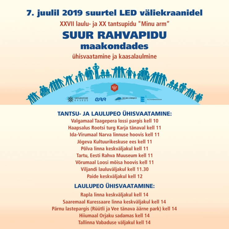 7. juuli 2019 Pärnus lastepargis kell 14.00 algab laulupeo "Minu arm" ühesvaatamine ja kaasalaulmine